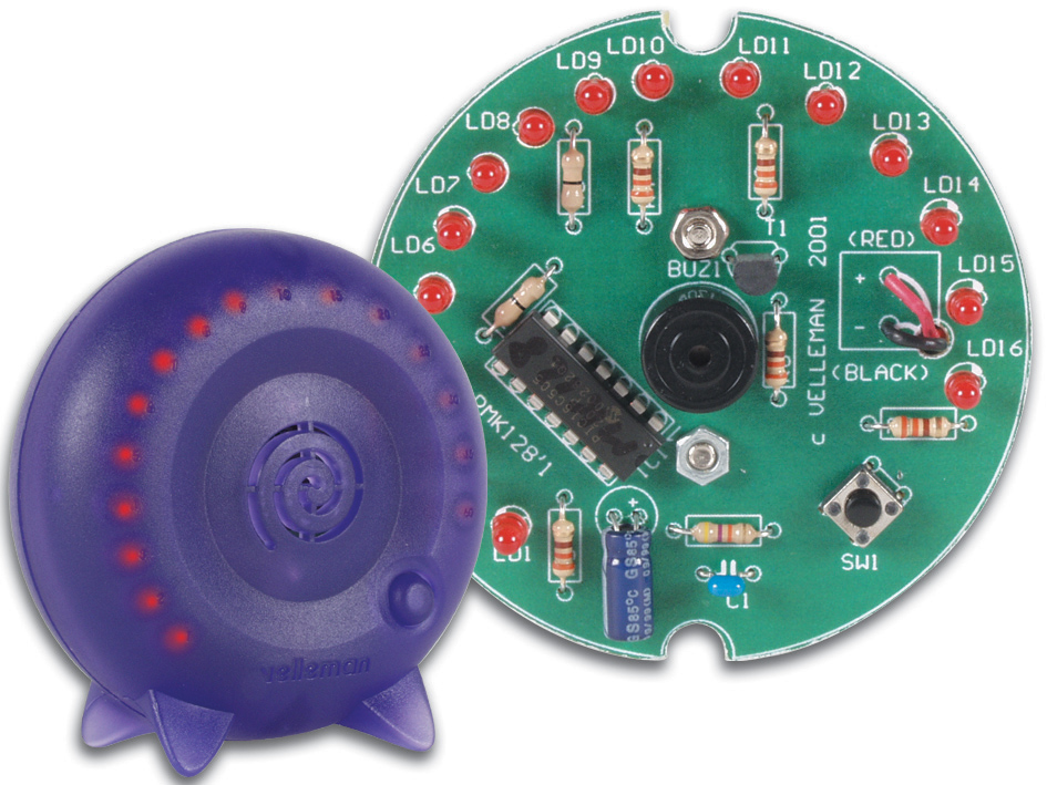 Timer för tider från en minut till en timme.Inställning sköts med en tryckknapp.Avläsning sker med 16 LED:s.Ljud och ljus alarm,med diskret förealarm.Automatisk avstängning.Mikroprocessorstyrd.settings: 1-10min : stegar varje minut 10-30min stegar var femte minut 30-60min stegar var femtonde minut.Noggranhet: bättre än 5% strömförsörjning 3xAAA batteri (medföljer ej) dimension 76,5x75x32mm'